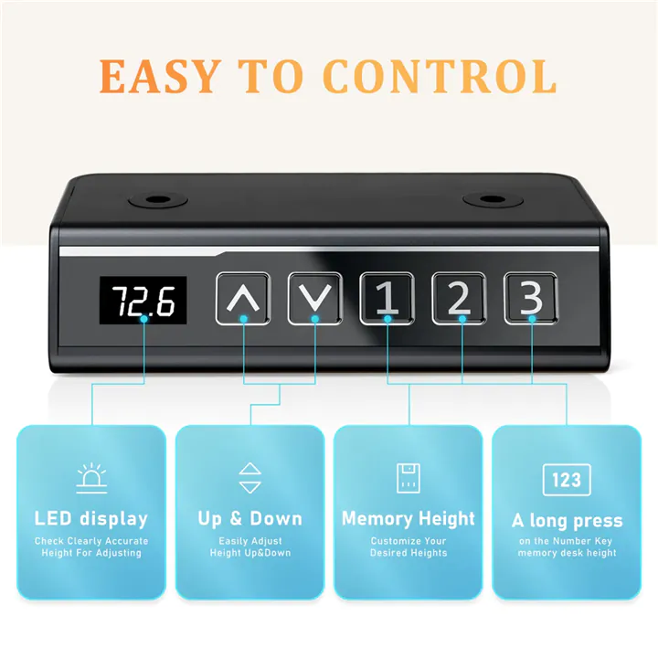 Upgrade your workday with this electric height-adjustable standing desk, designed to switch smoothly from sitting to standing at the push of a button. A sturdy T-shaped steel frame supports up to 176 lbs, while the quiet motor and programmable memory controller let you save up to three preferred height settings. Built-in cable grommets and dual hooks keep cords, headphones, or bags neatly organized, and integrated safety features—including child lock, anti-collision, and overload protection—ensure secure, reliable operation. With its full-size surface and modern design, this desk fits seamlessly into home offices and gaming setups alike.