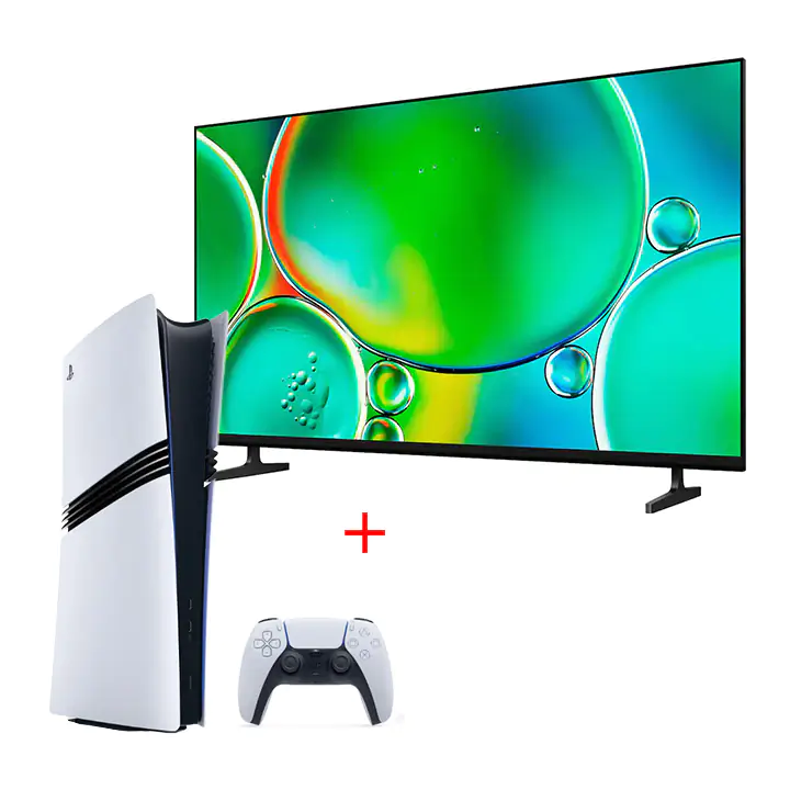 Sony 65” Class BRAVIA 2 II LED 4K UHD Smart Google TV PlayStation 5® Pro console DualSense® wireless controller 2TB SSD 2 Horizontal Stand Feet HDMI® cable AC power cord printed materials ASTRO’s PLAYROOM (Pre-installed game) |
