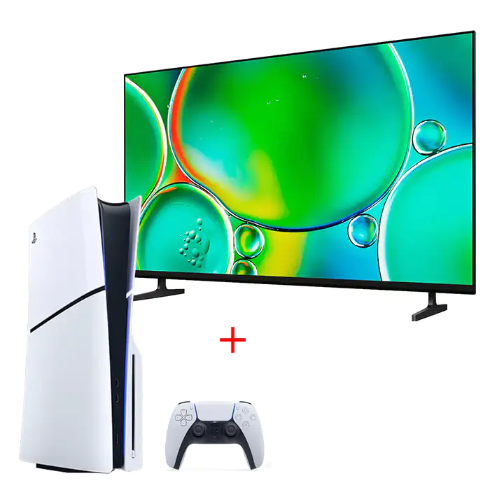 Sony 65” Class BRAVIA 2 II LED 4K UHD Smart Google TV PlayStation®5 slim disc edition console DualSense® wireless controller 2 Horizontal Stand Feet HDMI® cable AC power cord USB cable printed materials ASTRO’s PLAYROOM (Pre-installed game. PS5® console may need to be updated to the latest system software version. Internet connection required.) |
